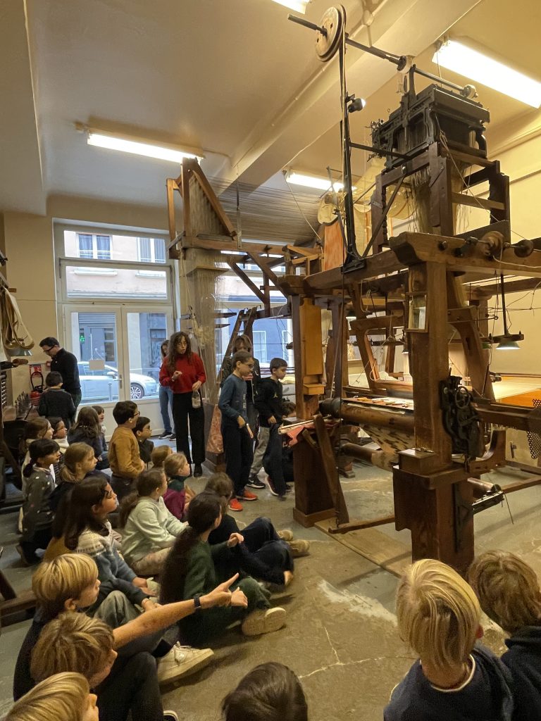 Le 17 décembre, les élèves des classes de CM1 ont eu la chance de découvrir un pan essentiel de l’histoire de Lyon lors de leur sortie scolaire à la Maison des Canuts, sur la colline de la Croix Rousse. Accompagnés de leurs enseignants et de guides passionnées, ils ont fait un voyage dans le temps, à la rencontre de l’histoire de Claudine de Lyon et des traditions lyonnaises. Une montée en toute énergie ! La journée a débuté par une marche énergique vers la Croix-Rousse. Les élèves ont bravé les escaliers et les ruelles sinueuses de ce quartier emblématique. Bien que l’ascension fût un peu sportive, la motivation était au rendez-vous, et l’enthousiasme de tous était palpable. À la découverte des canuts une fois arrivés à la Maison des Canuts, un lieu symbolique dédié à l’histoire des tisseurs de soie, les élèves ont plongé dans l’univers fascinant de la fabrication des tissus. Leur visite a débuté par une présentation du ver à soie. Un cocon a été offert à chacun d’entre eux, une manière ludique de comprendre le cycle de vie de cet insecte qui joue un rôle primordial dans l’industrie lyonnaise. Ensuite, un artisan leur a montré les différentes étapes de la fabrication de la soie, depuis le cocon jusqu’au tissu prêt à être tissé. Les enfants ont pu toucher les matériaux, observer les outils traditionnels et poser des questions, témoignant de leur curiosité et de leur intérêt. Le tissage Jacquard : un savoir-faire unique Le point culminant de la visite a été la démonstration du métier à tisser Jacquard, un dispositif révolutionnaire inventé à Lyon au XIXe siècle. Cet outil, qui a permis de mécaniser la production de tissus complexes, a fasciné les élèves. La possibilité de tisser des motifs à l’aide de cartes perforées les a fascinés et plusieurs ont pris un grand plaisir à observer le tissage en action. Ne déambulation dans le quartier historique Après cette découverte, les élèves ont continué leur exploration du quartier de la Croix-Rousse, en déambulant à travers ses célèbres traboules et en s’arrêtant sur plusieurs places typiques du quartier. L’occasion de découvrir l’architecture et l’histoire de ce lieu chargé de mémoire, tout en profitant d’un soleil radieux. Une journée inoubliable Cette sortie a permis aux élèves de prendre conscience du rôle fondamental que les canuts ont joué dans l’histoire de Lyon, tout en leur offrant une immersion totale dans le patrimoine local. Enthousiastes, les enfants ont témoigné de leur intérêt tout au long de la journée, et chacun repart avec des souvenirs précieux, qu’il s’agisse du cocon de soie ou des anecdotes partagées par les guides !